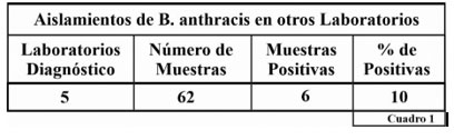a)- Bacillus anthracis, se continuó aislando e identificando en las Provincias de La Pampa, Buenos Aires y Rio Negro, NO manifestando brotes de Carbunclo bovinos en este periodo.